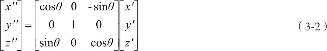 由过渡坐标轴系S'转动俯仰角θ到过渡坐标轴系S″–OX″Y″Z″,即式(3-2)。