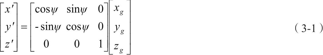 由地面坐标轴系S g 转动偏航角ψ到过渡坐标轴系S'–OX'Y'Z',即式(3-1)。