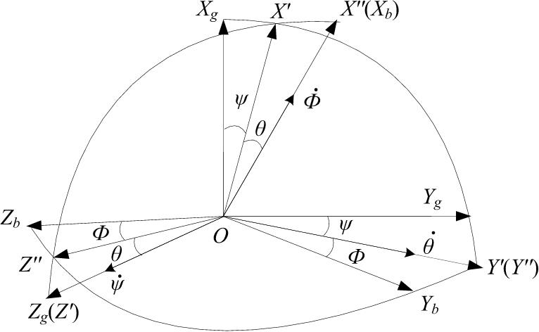 无人机的姿态角是由机体坐标轴系与地面坐标轴系之间的关系确定的,即通常所指的欧拉角。
