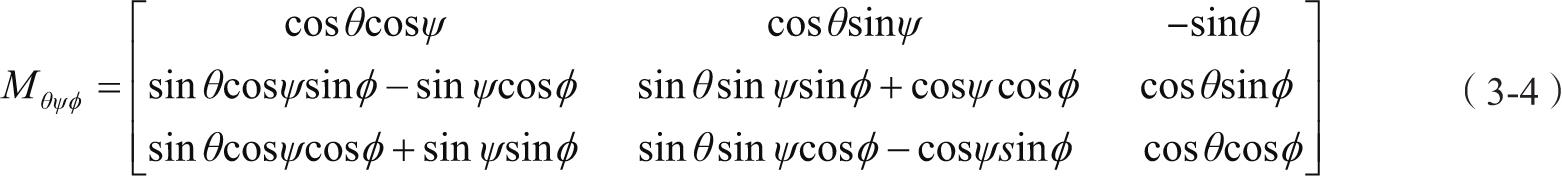 由地面坐标轴系S g 到机体坐标轴系S b 的转换矩阵为式(3-4)。
