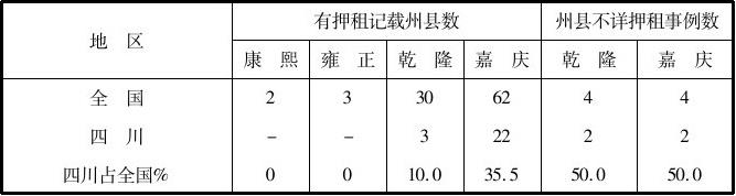 。据研究,四川在嘉庆朝上报刑部的租佃案件共61件,涉及37个州县,其中有押租的28件,占案件总数的46%,涉及22个州县