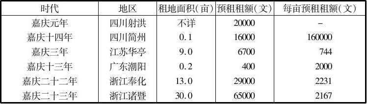 ,押租为地租的2.9倍。又如嘉庆二十年崇庆州“周仲银佃得周李氏田一亩,当交押租钱六千文,议定每年秋收后还租谷四斗,立有约据”