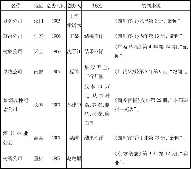 。此外,成都1910年还设立有农业研究会、南充有农商医三会公所、渠县有水利局等