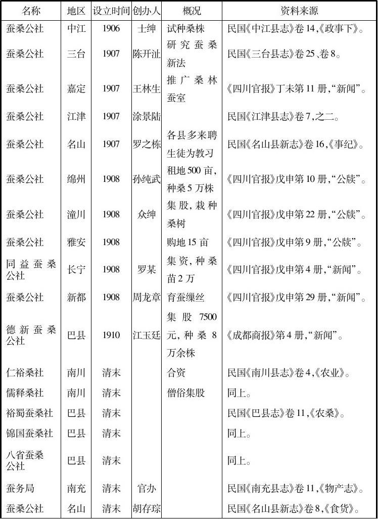 。1909年资州朱俊等呈请设立资州等州县蚕业有限公司,川督表示“公家无不力任保护”
