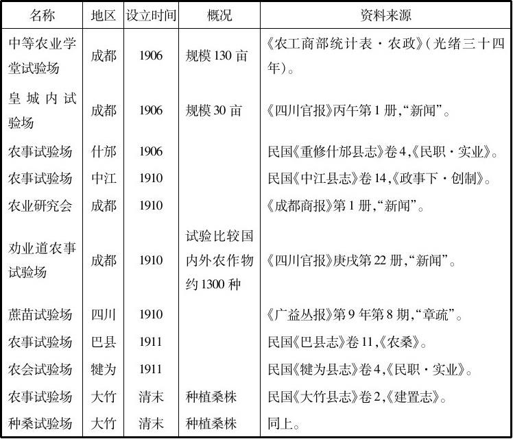 据统计,迄1911年全川计有农业试验场74处。各试验场注意试验和改良种籽,劝业道将“外国籽种分类说明,给发试种”