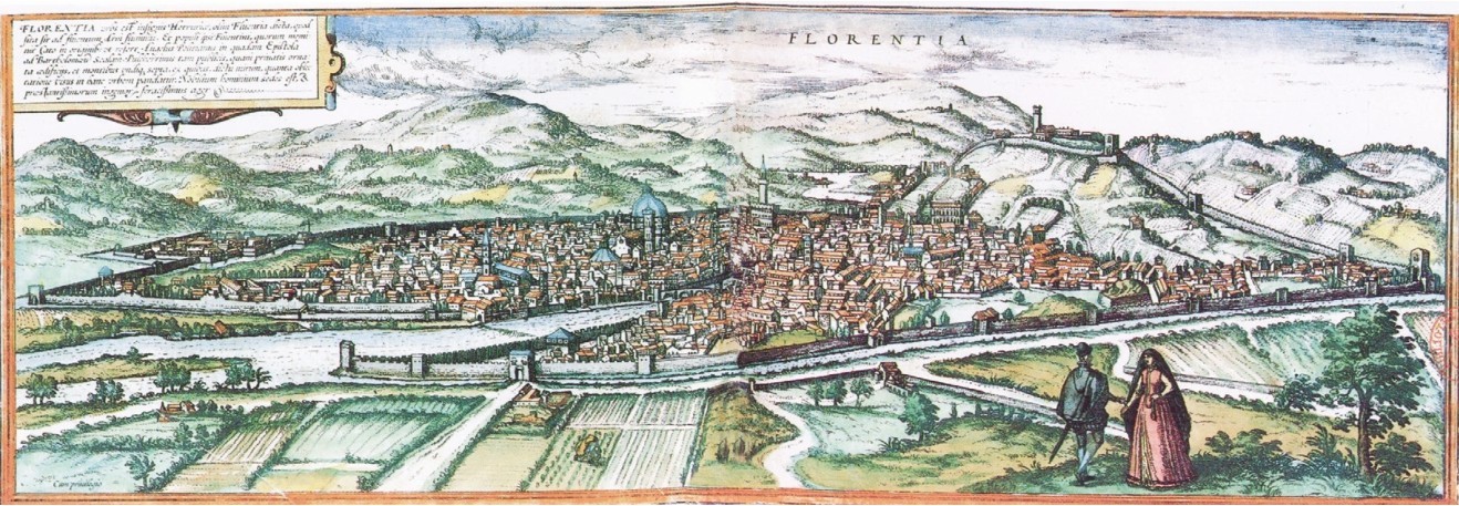 ▲阿尔诺(Arno)山谷为托斯卡纳少有的平地,佛罗伦萨便在这个山谷中建成。当时人们认为此地气候潮湿,对身体不利,有条件的人都住在近郊的山冈上。伽利略的住宅坐落在城外的阿特切里(Areetri)山冈上,现在这座住宅已由当地政府整修成伽利略纪念馆向公众开放。