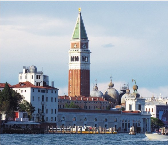 ▲图中央是威尼斯圣马可(San Marco)广场钟楼(王直华/摄)。