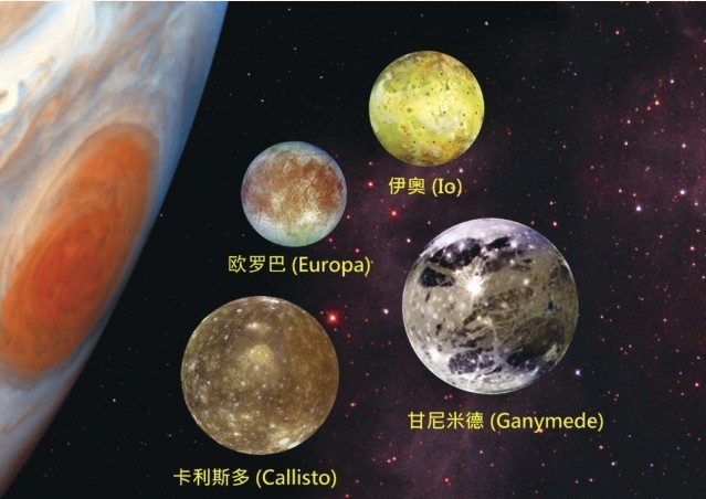 ▲伽利略卫星(Galilean satellites)是木星的四个大型卫星,由伽利略于1610年1月7日首度发现,所以将它们称为伽利略卫星。