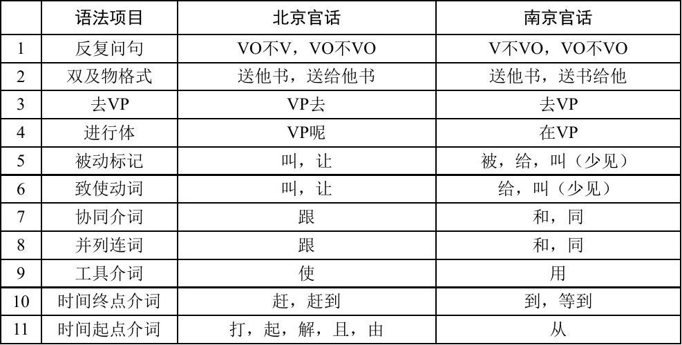 普通话的语法形式与词汇一样,也是南北官话混合的结果。词汇混合的结果往往是择一,而语法混合的结果则更多是来自南北官话的多种语法形式并存。因此,要弄清今天普通话词汇和语法形式的来源,就必须对清末民初北京话的词汇和语法以及同一时期的南京官话的词汇和语法做一个梳理。