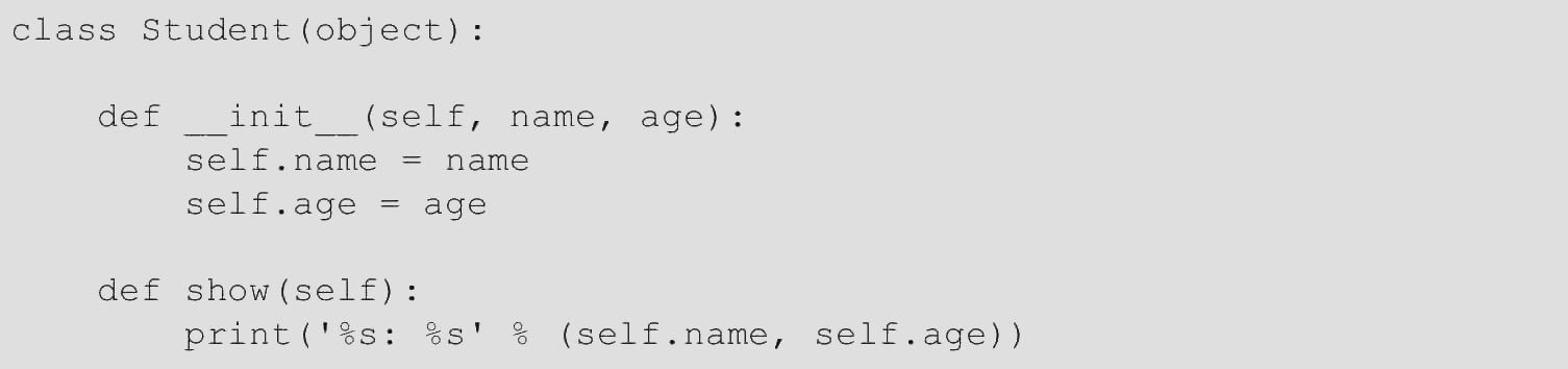 仍以Student类为例,在Python中,定义类是通过class关键字实现的。定义类的语法如下。