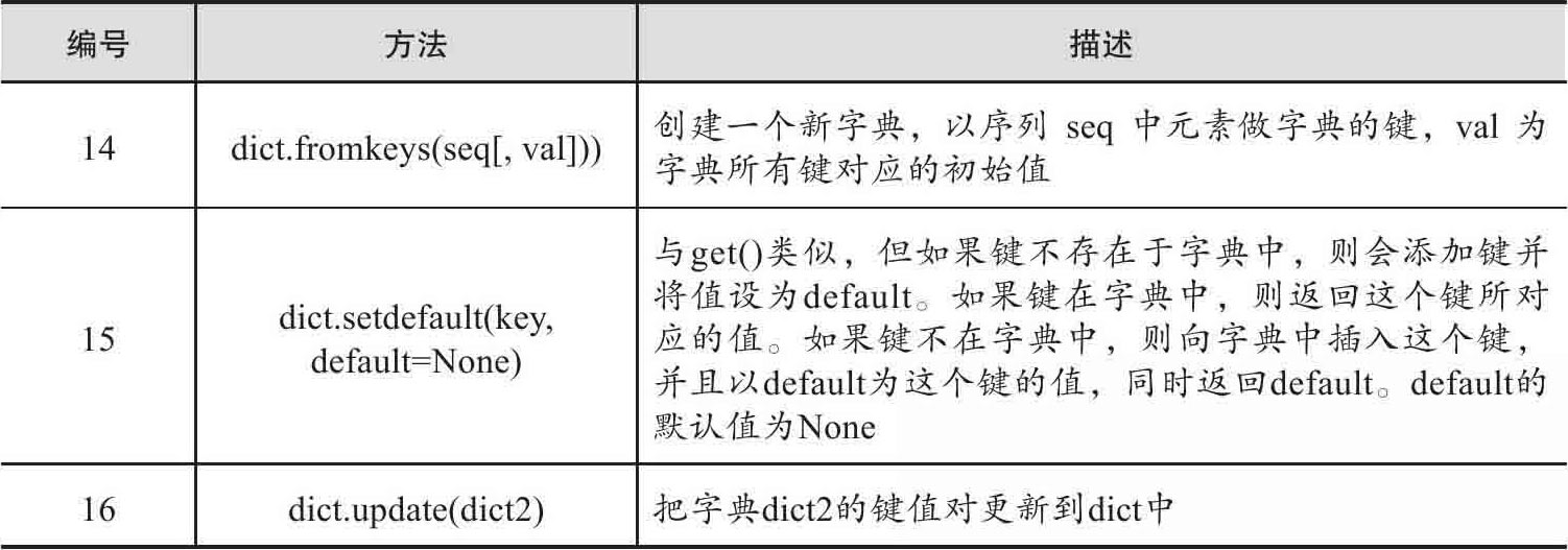 Python中dict的方法如表1-2所示。