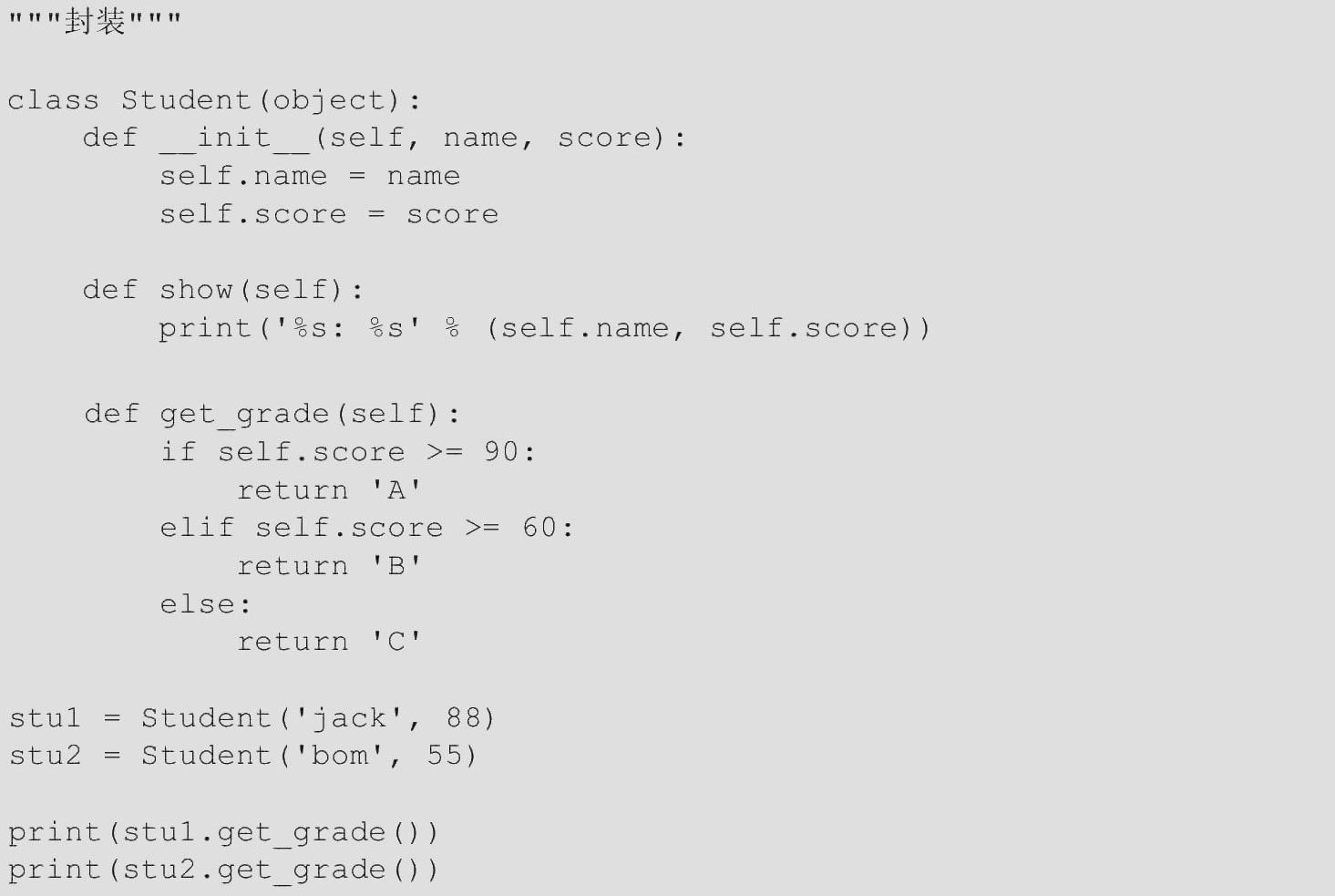 封装的另一个好处是可以给Student类增加新的方法,如get_grade()。