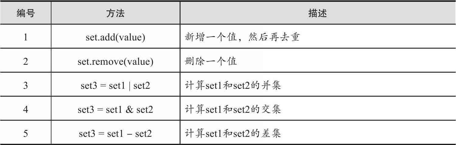 Python中set的方法如表1-3所示。