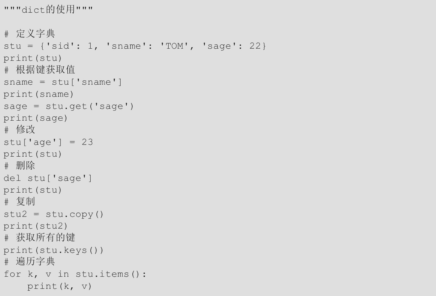 【范例1.3-13】dict的使用(源码路径:ch01/1.3/1.3-13.py)