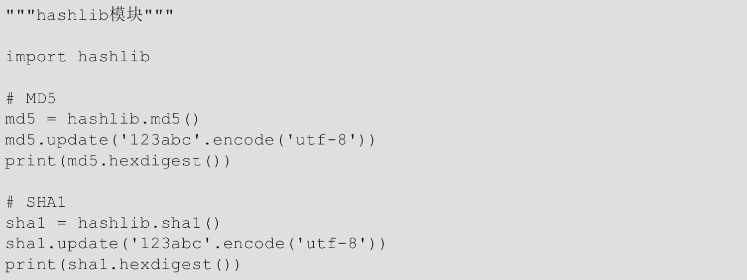 【范例1.3-34】hashlib模块(源码路径:ch01/1.3/1.3-34.py)