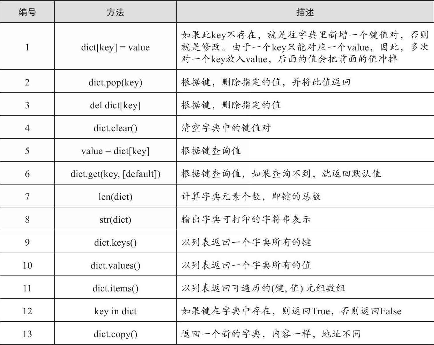 表1-2 dict的方法