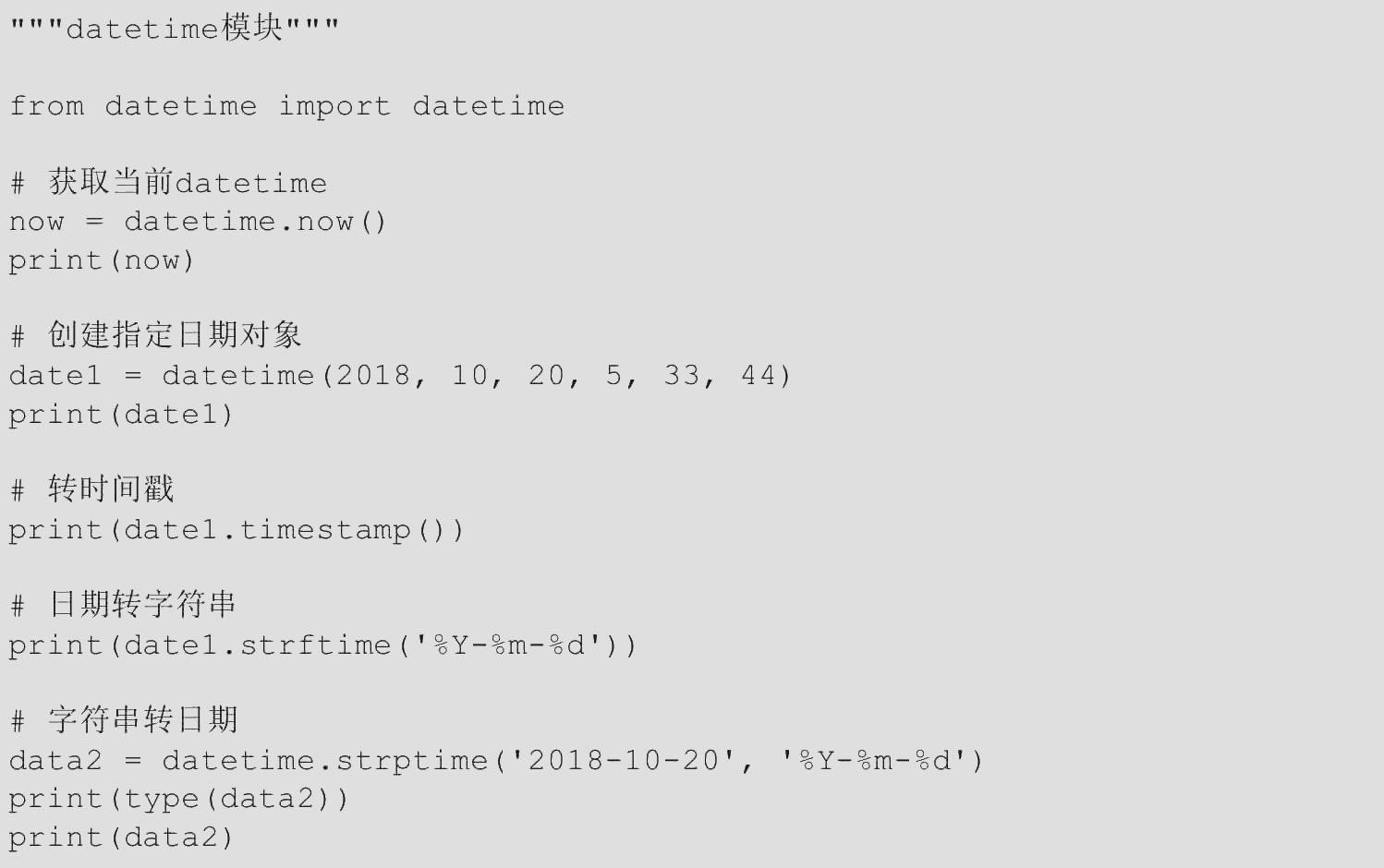 【范例1.3-33】datetime模块(源码路径:ch01/1.3/1.3-33.py)