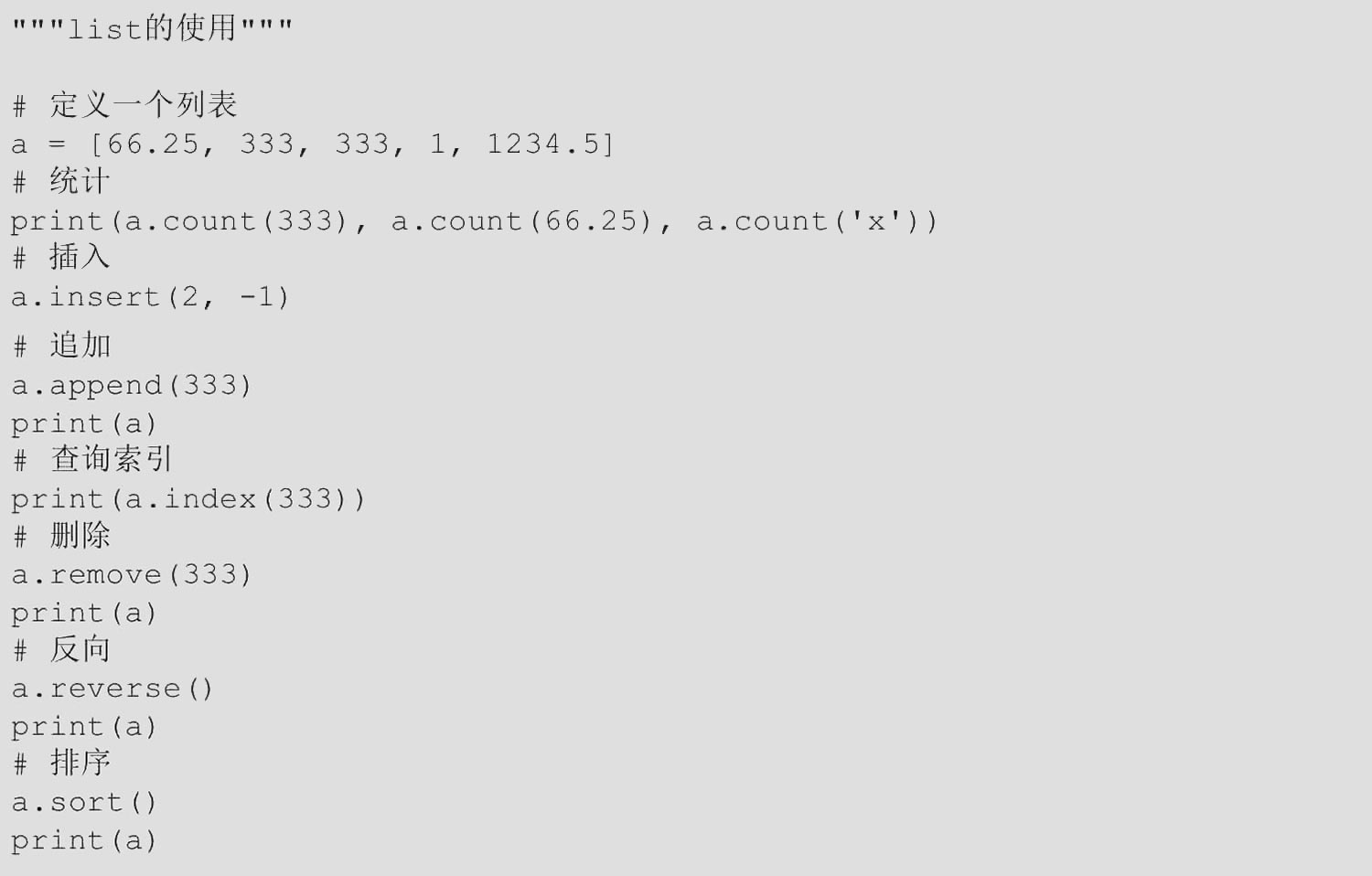 【范例1.3-11】list的使用(源码路径:ch01/1.3/1.3-11.py)