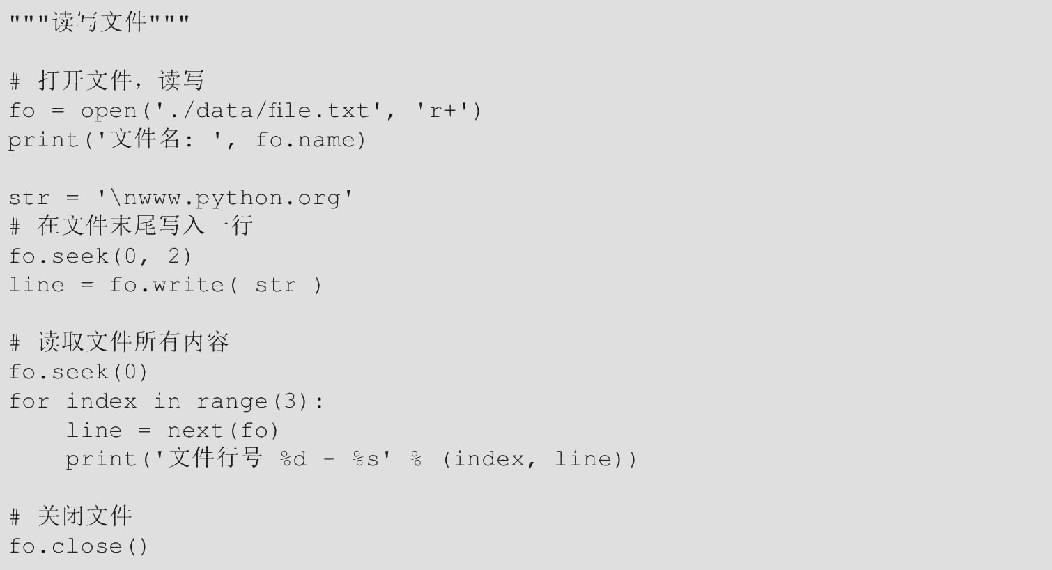 【范例1.3-9】for循环语句(源码路径:ch01/1.3/1.3-9.py)