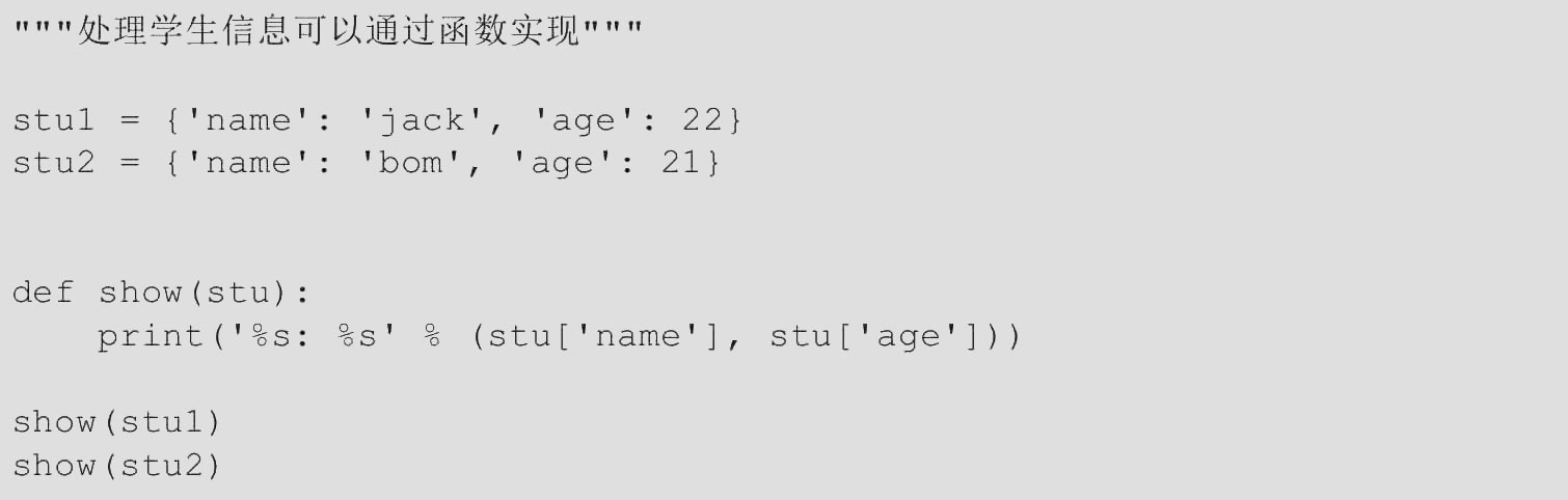 【范例1.3-24】处理学生信息可以通过函数实现(源码路径:ch01/1.3/1.3-24.py)