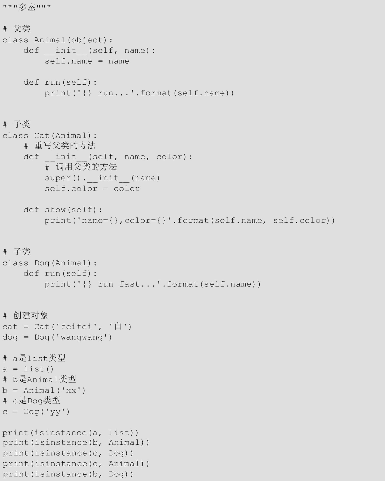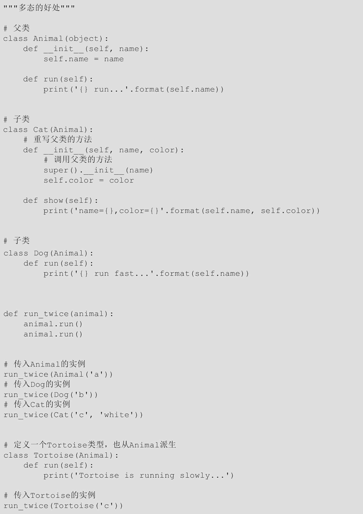 【范例1.3-30】多态(源码路径:ch01/1.3/1.3-30.py)
