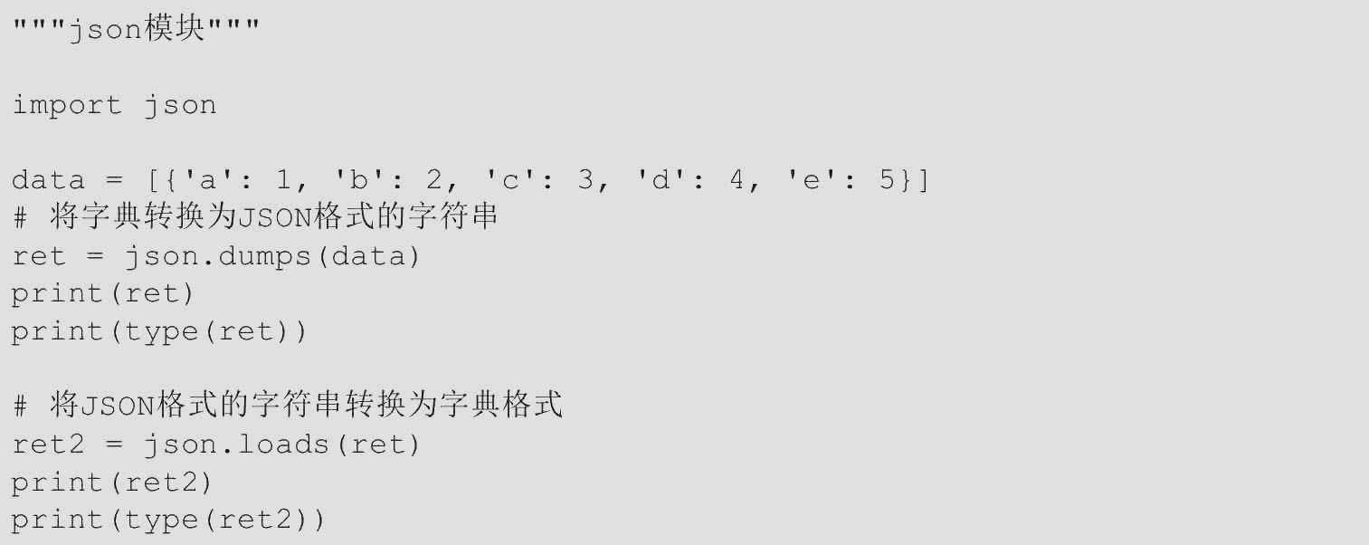 (2)loads()方法将JSON格式的字符串转换为字典格式。