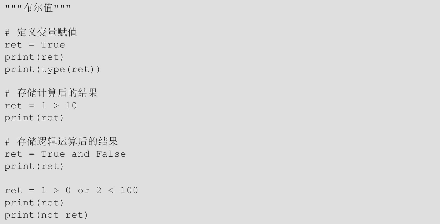 【范例1.3-4】布尔值(源码路径:ch01/1.3/1.3-4.py)
