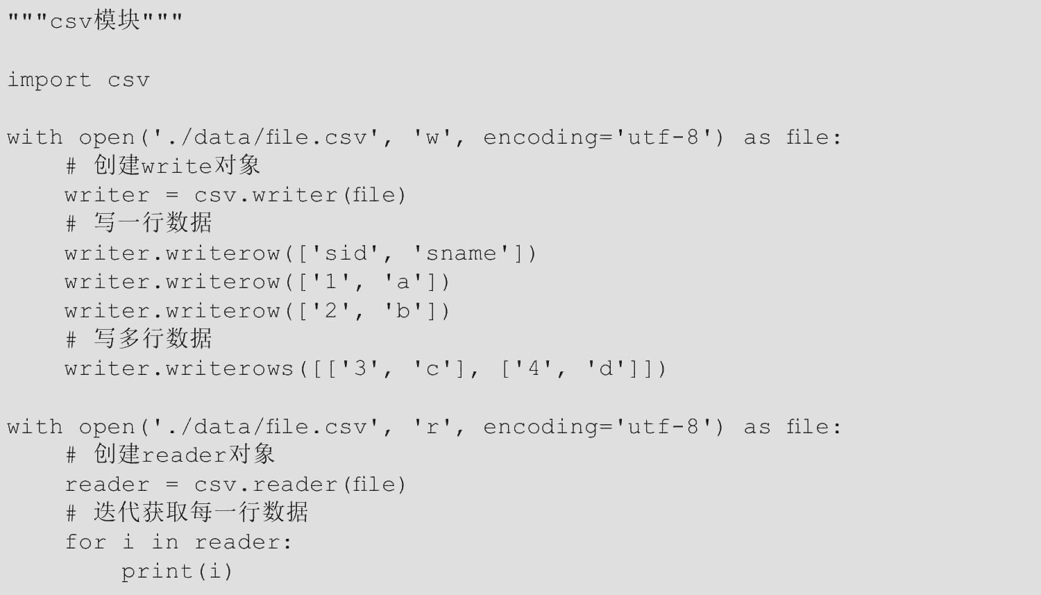【范例1.3-37】csv模块(源码路径:ch01/1.3/1.3-37.py)