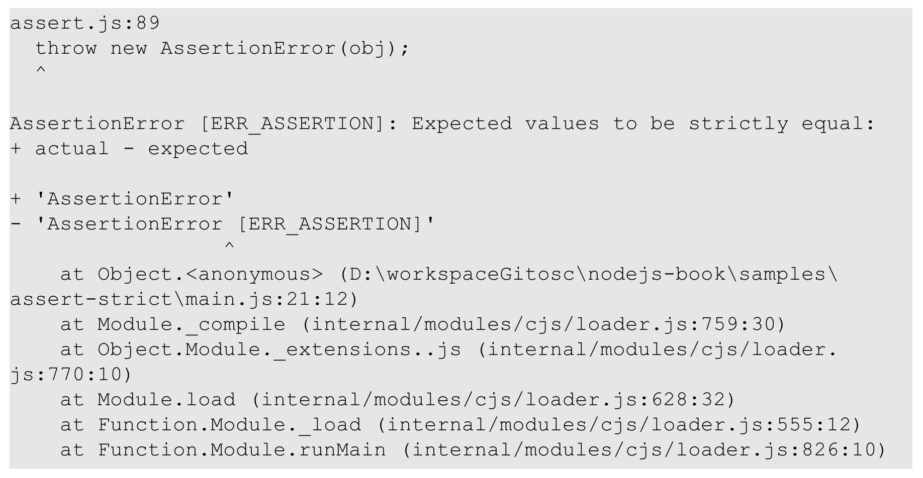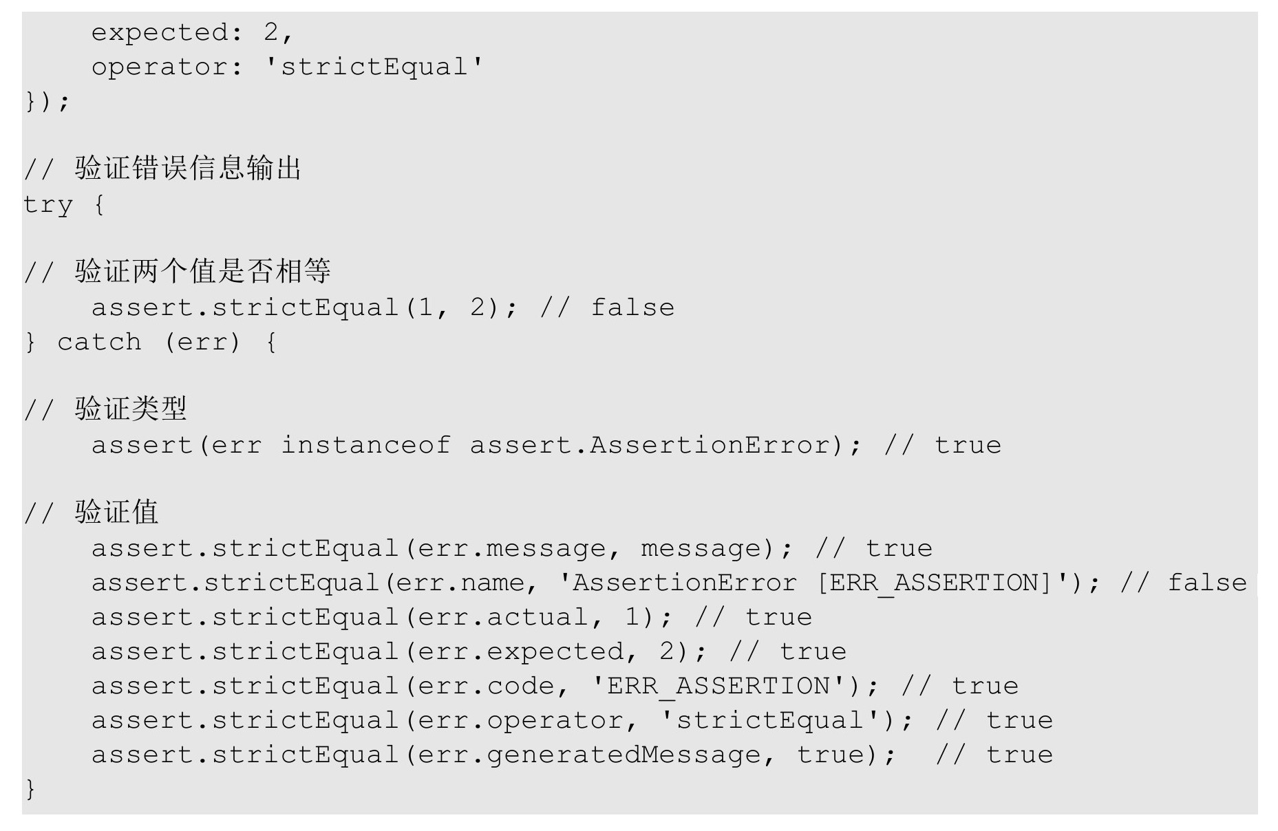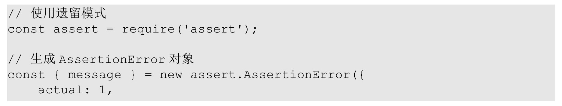 在上述例子中,通过“new assert.AssertionError(options)”的方式实例化了一个AssertionError对象。