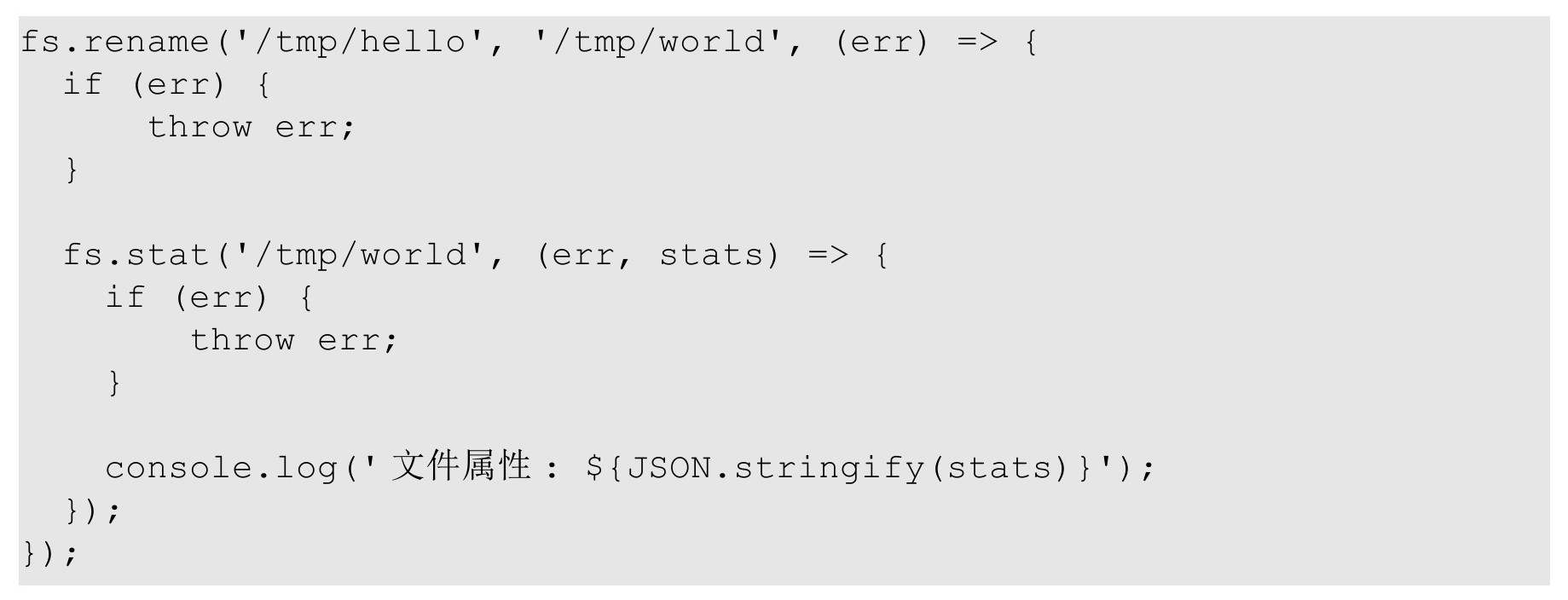 使用异步的方法时无法保证顺序。因此,以下的操作容易出错,因为fs.stat()操作可能在fs.rename()操作之前完成。