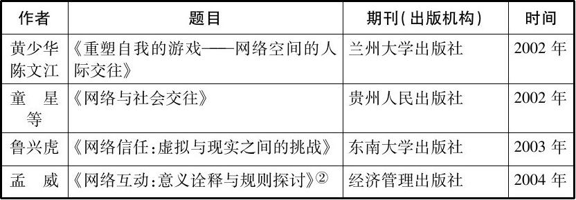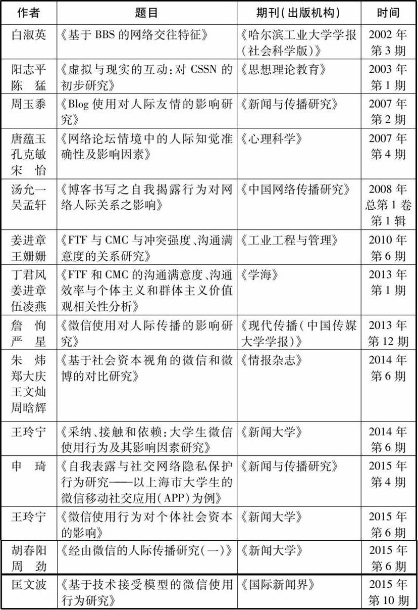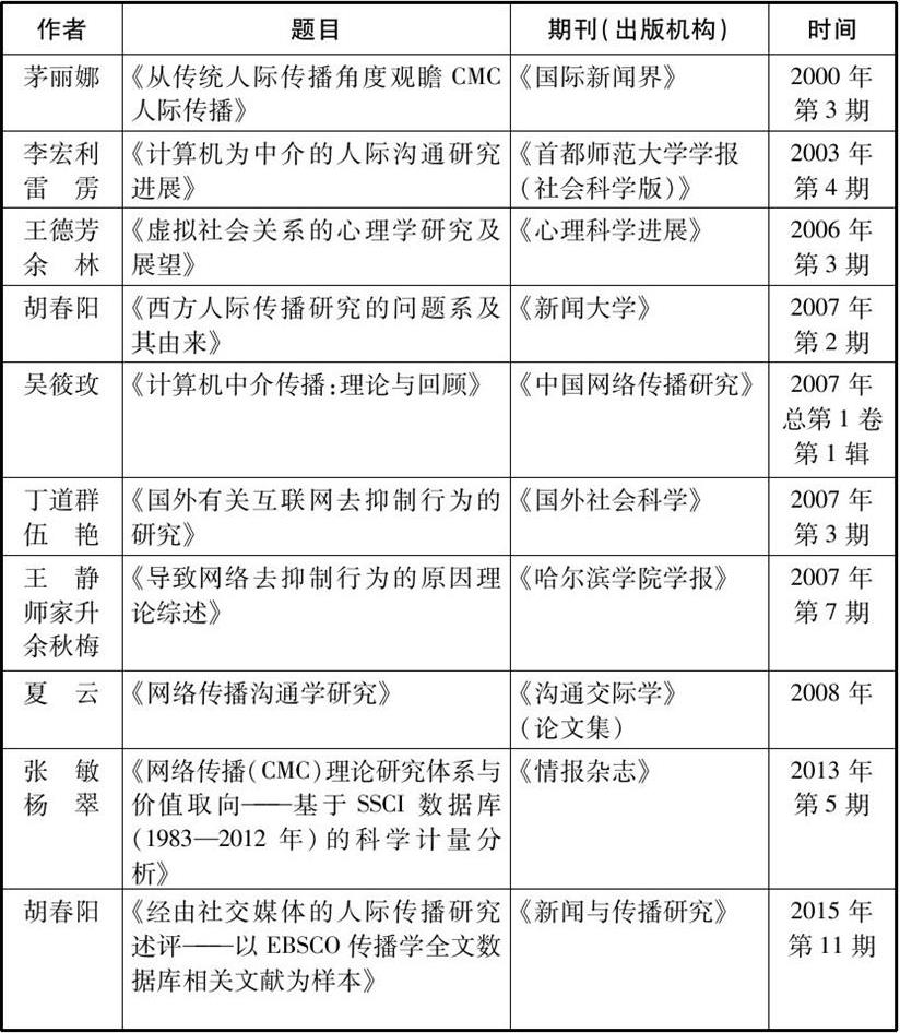 (1)一些对国外网络人际传播研究成果进行梳理和引介的论文(见表0.1)。