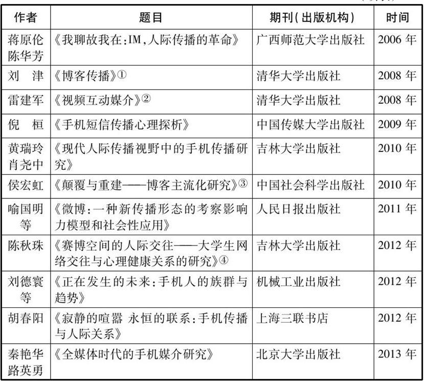 表0.3 近年来国内出版的网络人际传播研究相关学术专著