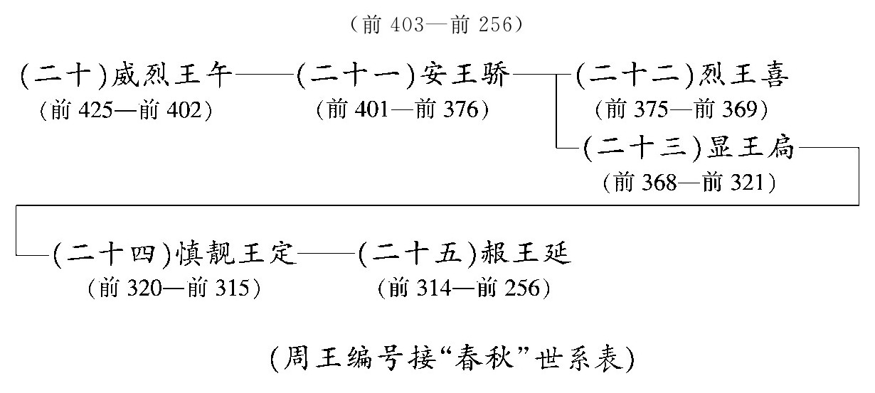周平王元年(前770)迁都于东都雒邑,此后的周王朝史称东周。原都于丰、镐的王朝史称西周。东周王朝至公元前249年(秦庄襄王元年),为秦所灭,其存在时间为521年。我国习惯上把这段历史分为两个时期,自平王东迁至韩、赵、魏“三家分晋”(周威烈王二十三年,前403),为春秋时期。自“三家分晋”至秦始皇统一六国(秦始皇二十六年,前221),为战国时期。春秋、战国这五百余年间,就其社会或各种主要制度来说,是一个巨大的转型时期。在政治方面,是由分封制向中央集权制下的郡县制转型;在土地制度方面,是由国有制向私有制转型。