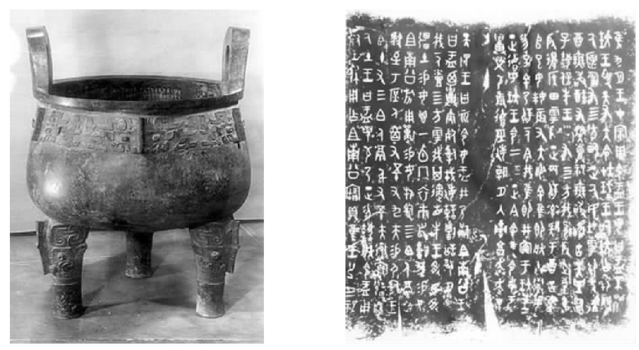 青铜铸造业是西周时期的主要手工业,其技术继承了商代而有所发展。器形和数量都比商代增多。主要青铜器有礼器、兵器、手工工具、生活用具和车马饰等。在考古工作中发现有西周青铜器出土的省份很多,如陕西、河南、山东、山西、河北、辽宁、江苏、安徽、湖北、湖南、江西等省,都有发现,不少铜器铸有铭文。西周前期的大盂鼎高约1公尺,重153.5公斤,有铭文291字,记载了周康王二十三年策命其臣盂,并赏赐给他奴隶和其他财物的情况。西周后期,铜器的数量大增,带铭文的铜器更多。周宣王时的毛公鼎有铭文497字,记载了宣王告诫和赏赐其臣毛公的情况。有些铜器的铭文,记载着封建贵族赏赐、赠送、交换、赔偿土地、奴隶或其他财物的情况,也有记载战争的。这些铭文从不同角度反映了当时的政治和社会的一些重要情况。