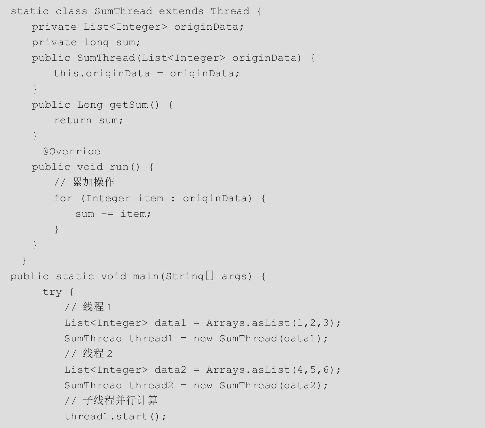 如果前后的代码没有直接联系,如两个基于不同数据集合的计算任务,就可以在主线程中创建两个子线程来分别执行这两个任务,从而实现任务的并行执行,缩短整体的执行时间。对于Java企业级应用系统而言,特别是在高并发场景中,一般都会通过多线程来处理不同的用户请求,实现请求的并发处理。