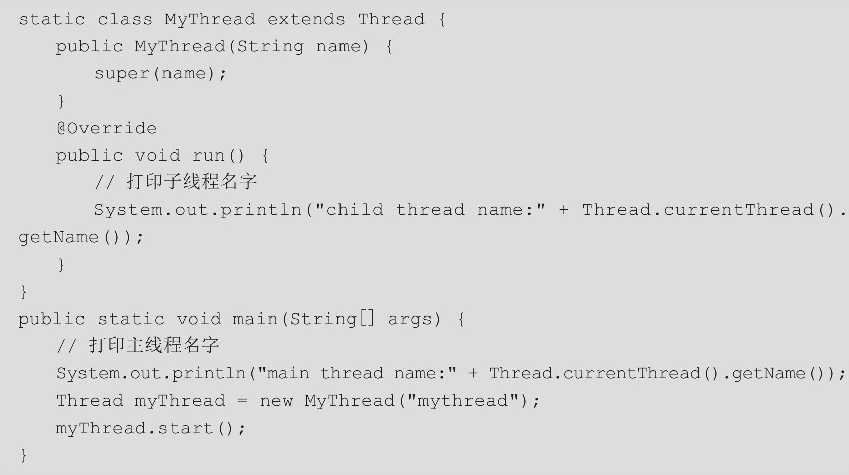 由执行结果可以看出,Java主线程的名字为main,子线程的名字为Thread-线程编号,如果存在很多子线程时,也可以自定义子线程的名字,从而方便跟踪线程的执行,示例如下: