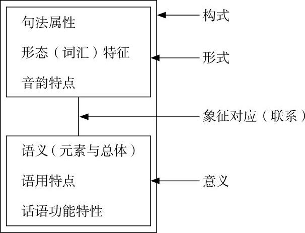 在构式理论方法中,作为形式—意义配对的“构式是垂直结构,它结合了语义、句法甚至语音信息”(Croft & Cruse, 2004∶247)。构式在本质上是象征单位,如图4.1所示。构式的形式一面关涉语言本身的信息,无论是语法、形态还是语音信息。术语“意义”涵盖“构式功能中所有规约化的层面”,不仅包括言语所描述的事件特性,还可能包括话语语境的特性和对话各方的语用情形(Croft & Cruse, 2004∶258)。构式这个学得的形式和意义配对的概念,对于语法的体系结构具有重要的意义。