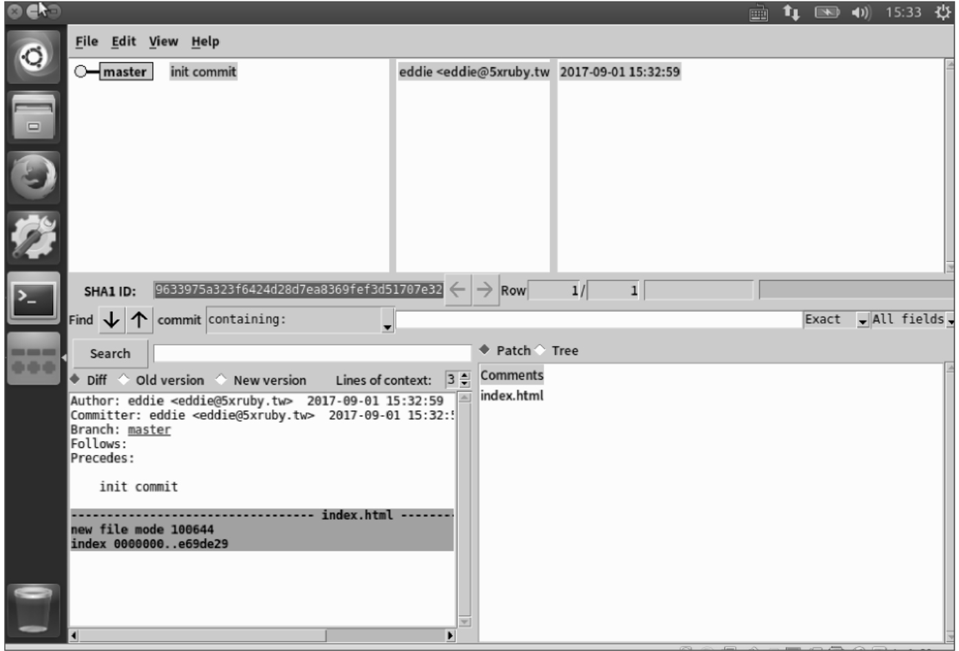 gitk软件实际运行的界面如图2-10所示。