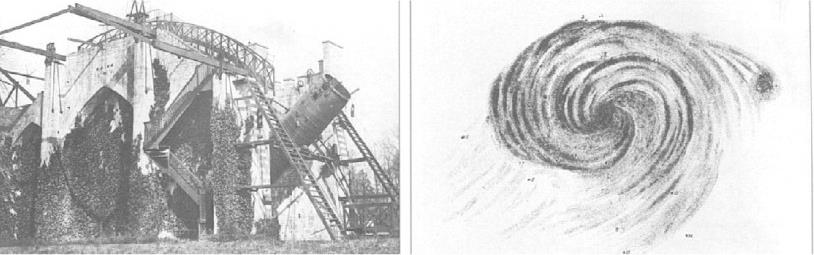 图2-5 罗斯的“城堡”(左)和他描绘的螺旋星云(右)
