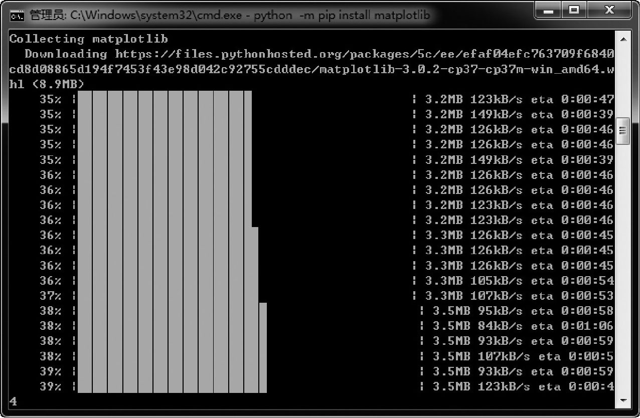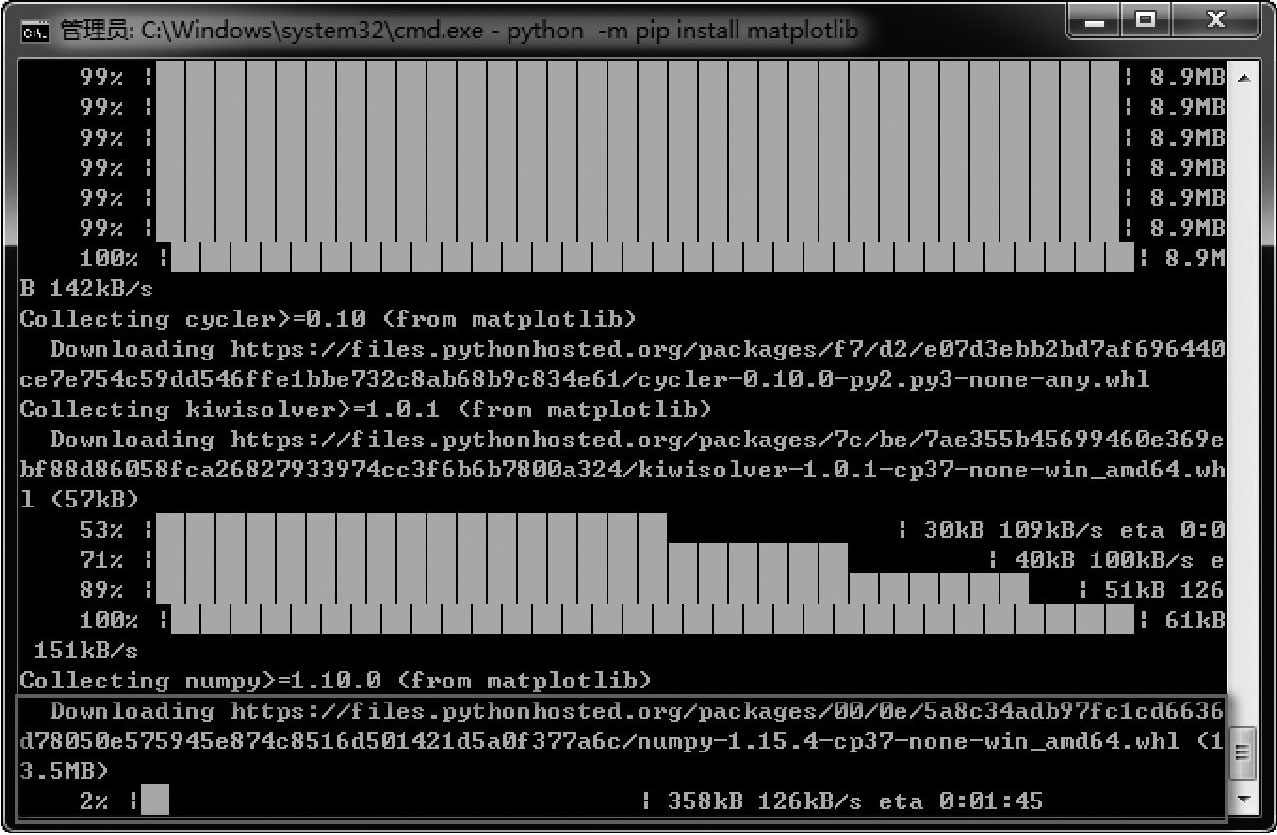 由于Matplotlib依赖于NumPy,故在安装Matplotlib时会自动下载并安装NumPy,如图2-34所示。