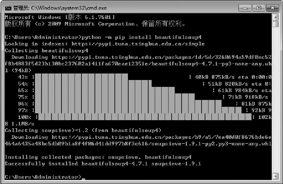 图2-42 安装BeautifulSoup库