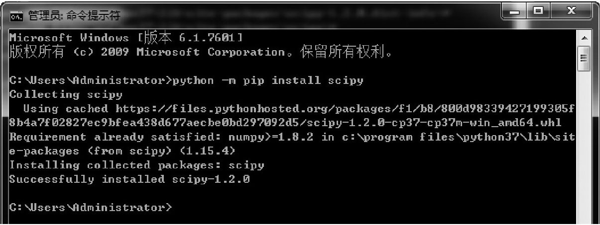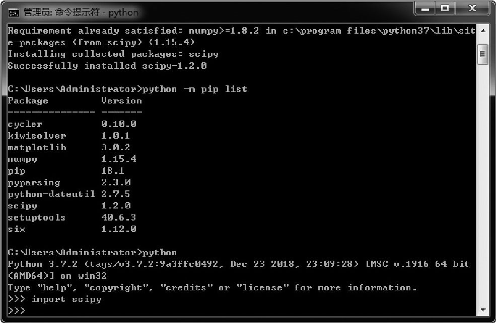 图2-37 确认SciPy组件(库)安装成功