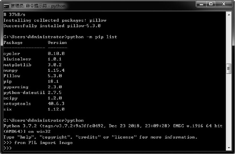 图2-39 确认Pillow组件(库)安装成功