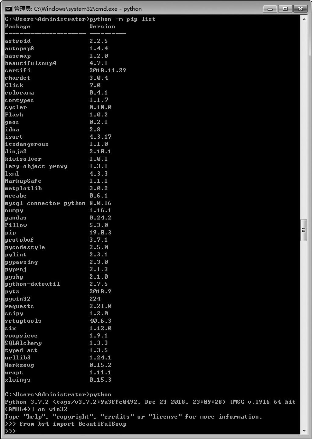 图2-43 确认BeautifulSoup库安装成功