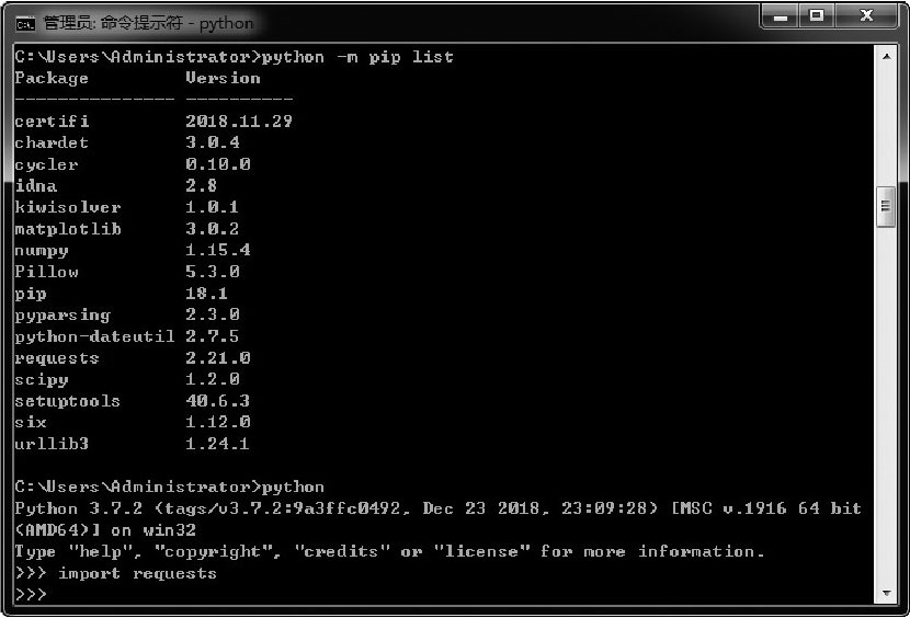 图2-41 确认Requests库安装成功