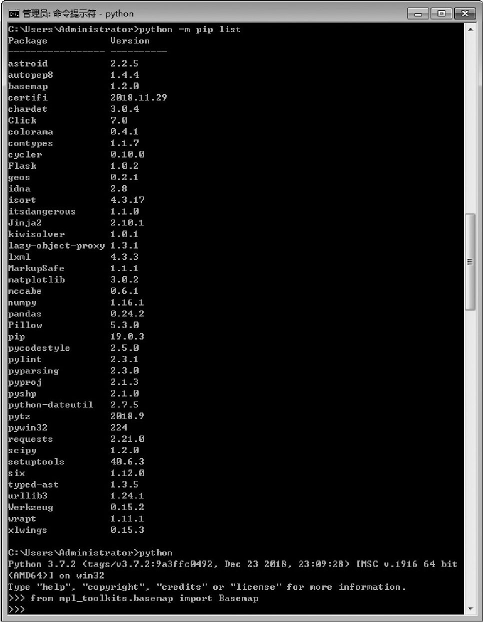 图2-48 确认geos和Basemap库安装成功