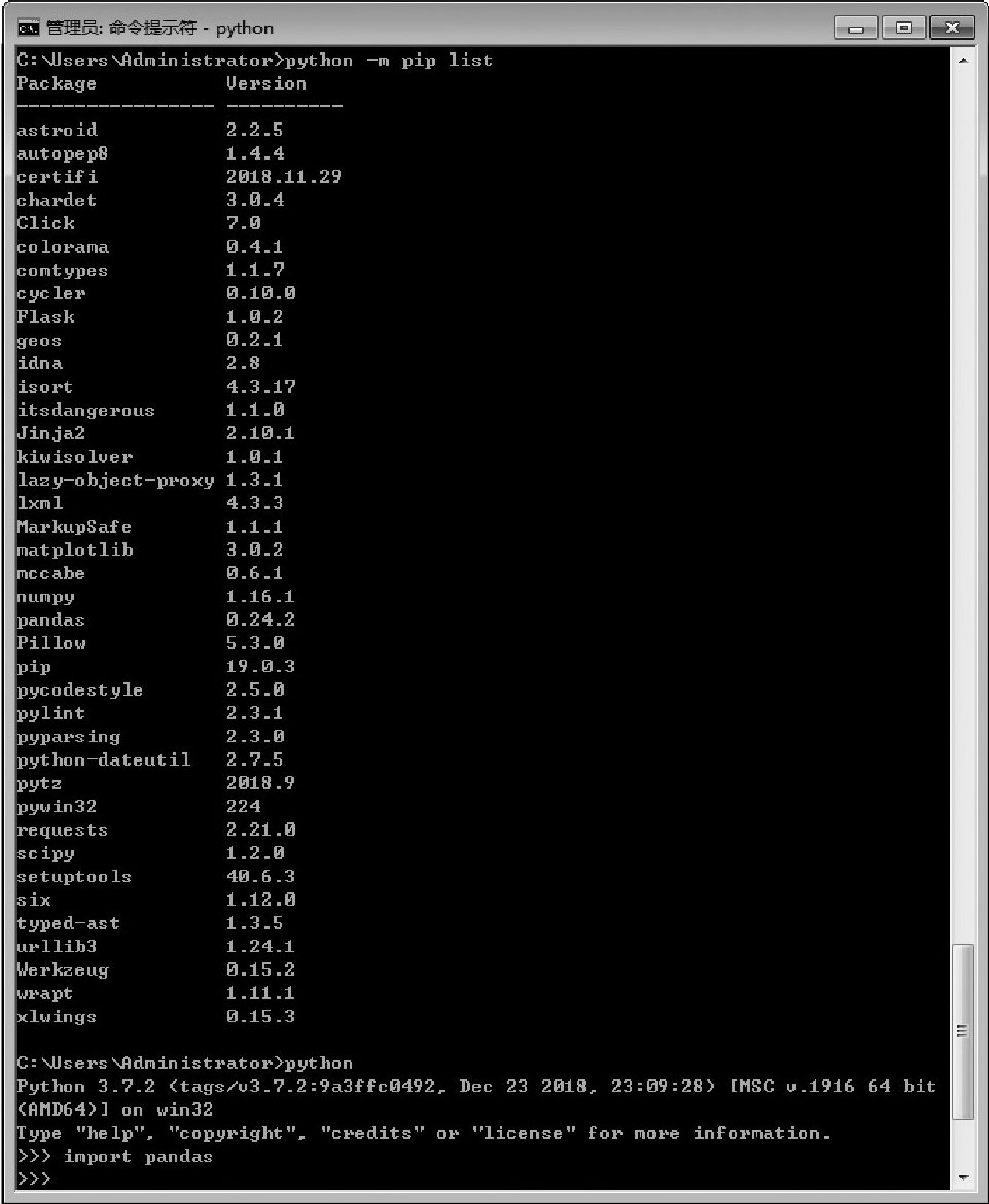 图2-45 确认Pandas库安装成功