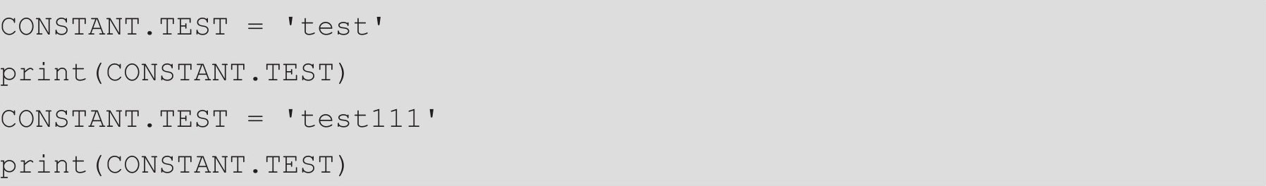 可以看到,第一次为CONSTANT.TEST赋值后能够成功执行,当尝试为CONSTANT.TEST重新赋值时出现错误提示。由于CONSTANT.TEST的内容不可修改,相当于起到了常量的作用。