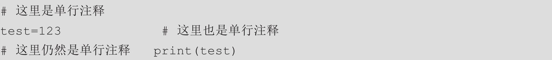 Python中的单行注释以“#”开头。它可以单独占一行,也可以在同一行的代码右边出现,示例如下。