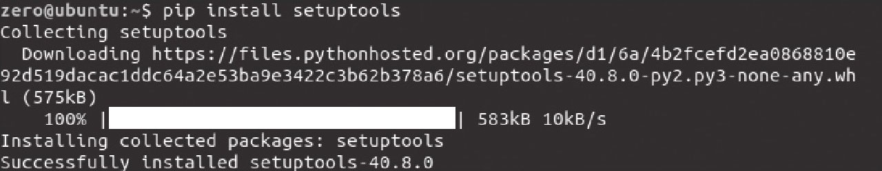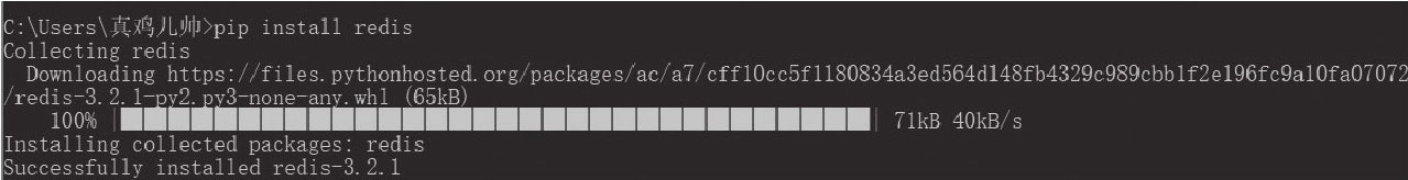 在安装完pip后,便可以使用pip来安装模块了,输入pip install模块名,就可以安装相应的模块。以安装setuptools和redis模块为例,结果如图3-5和图3-6所示。